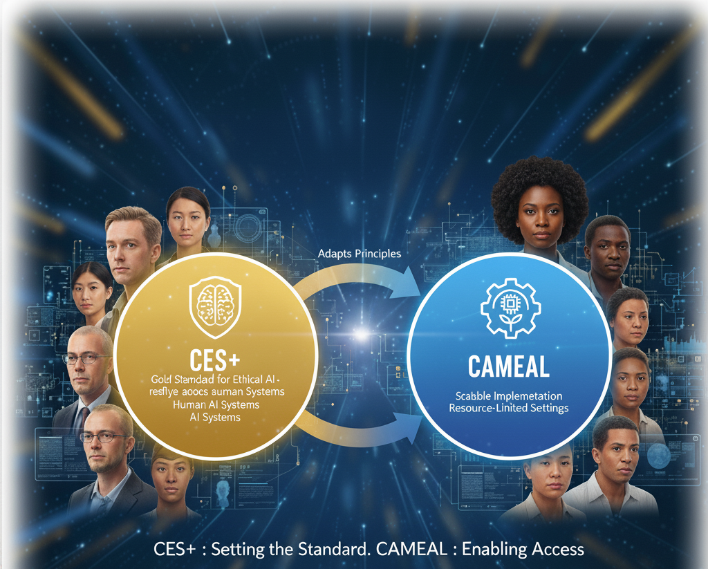 CES+ sets the Gold Standard for Ethical AI-ready Governance across human, human-AI and AI systems, while CAMEAL Adapts these Principles for Scalable Implementation in Resource-Limited Settings